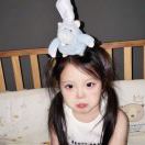 全身兔子装的婴儿,憨态可掬,双眼大而明亮,圆润的脸颊上挂着甜蜜的笑容,跳跃中展现出纯真的童趣,背景简约,黑白线稿风格,细致的兔子装饰有可爱的耳朵和尾巴,周围点缀着小星星和心形图案,营造出温馨梦幻的氛围。