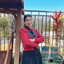 中国小女孩,黑色短发,笑容灿烂,穿着五彩斑斓的裙子,在阳光透过绿荫的草坪上奔跑,周围鲜花盛开,蝴蝶飞舞,空气中弥漫着春天的气息,快乐无忧与自然和谐相融。
